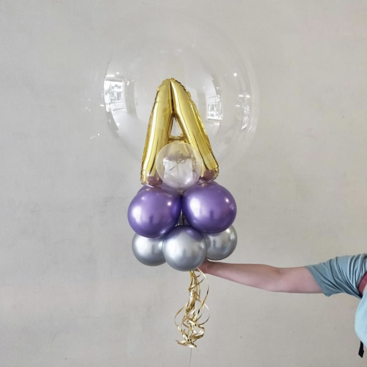 24" Transparent Latex Helium Balloon inside with single alphabet