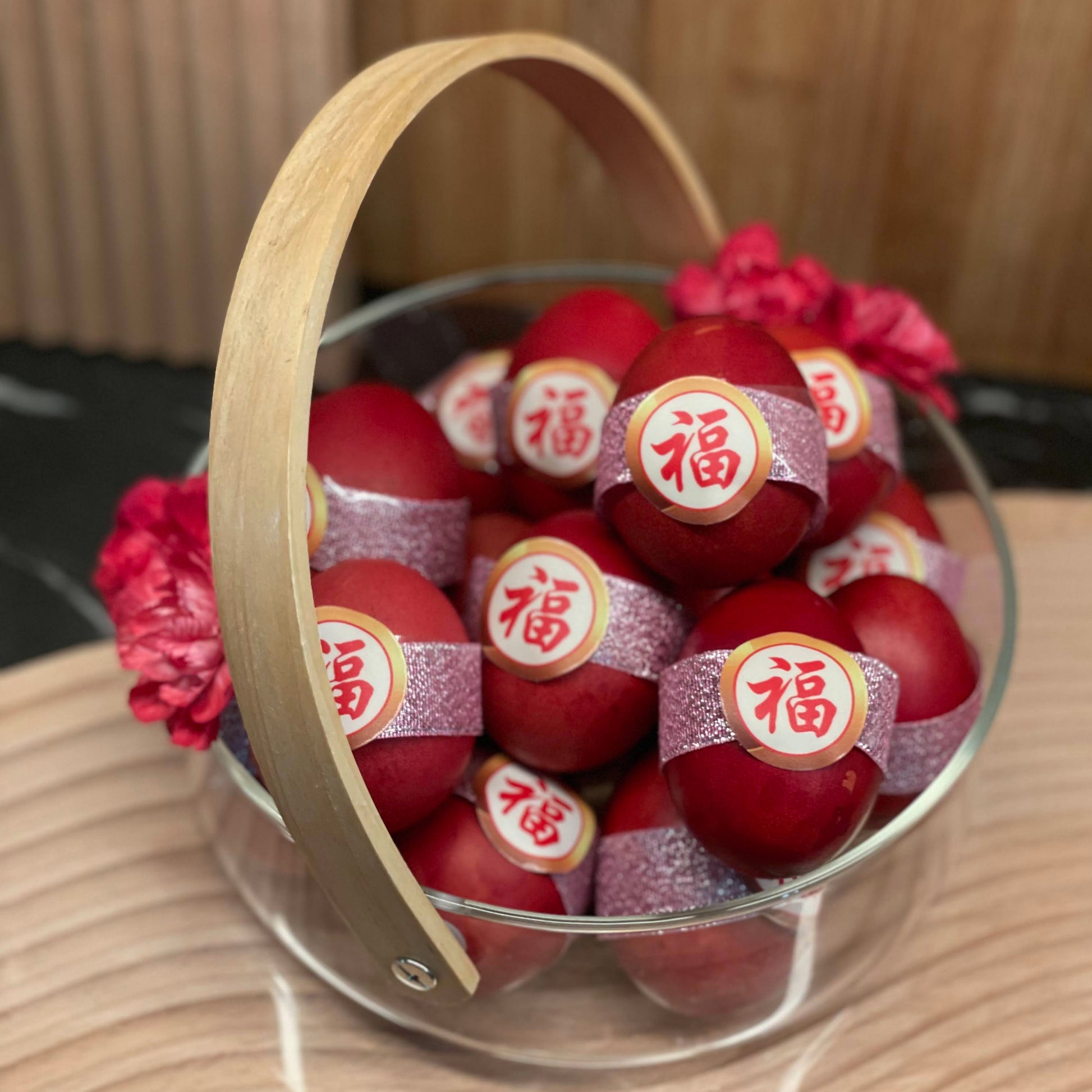 Our Red Eggs are bundle with Prosperity insignia. It is a traditional token distributed during a baby 30 days' on earth celebration.