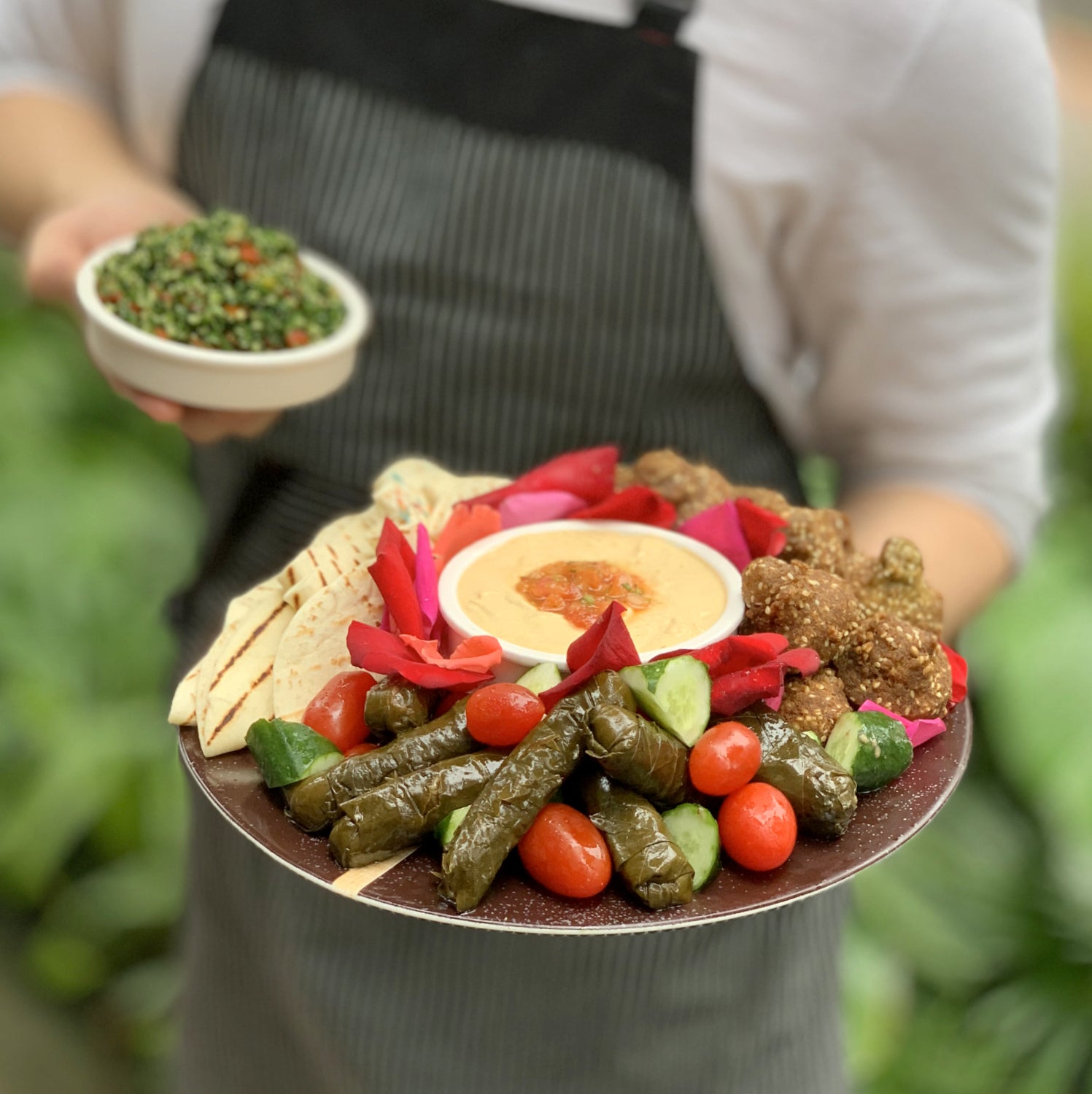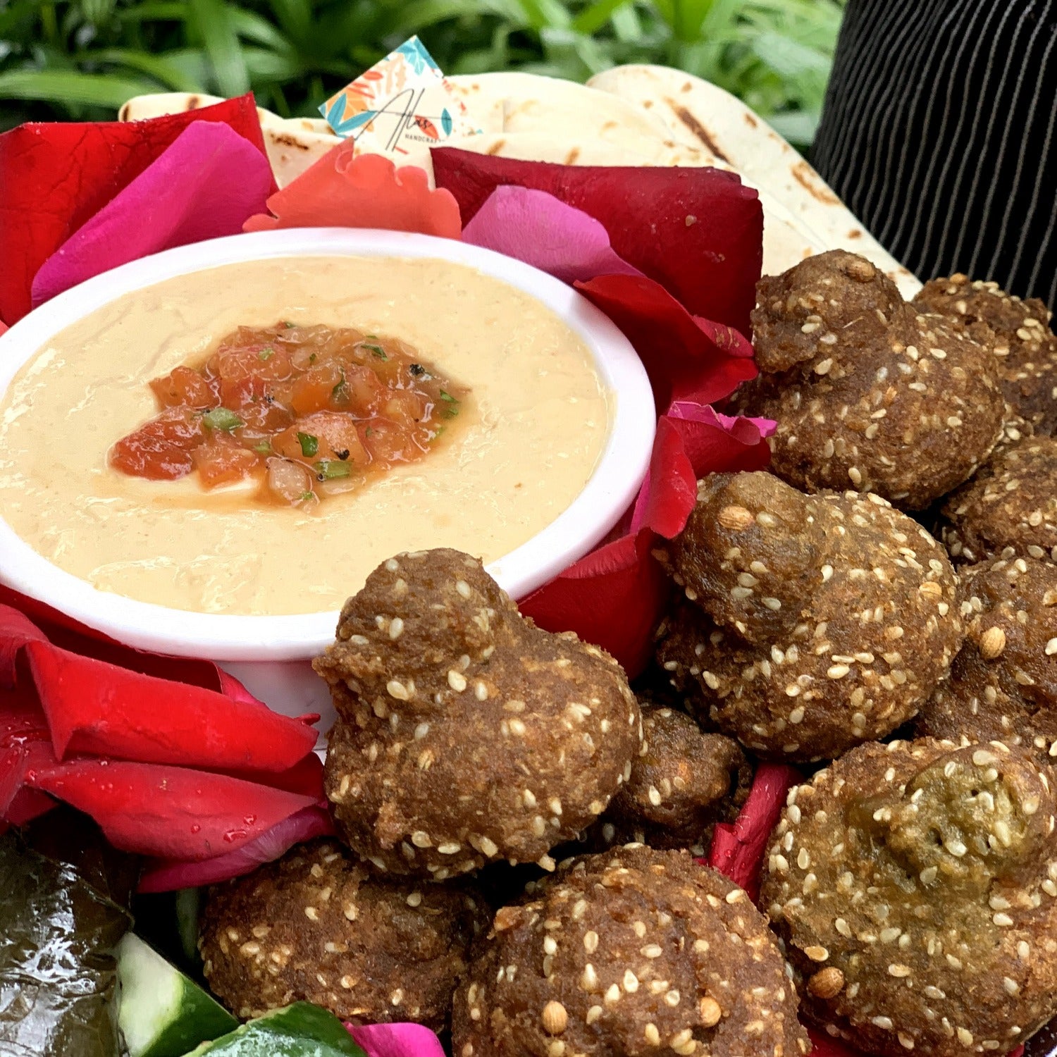 Ideal for intimate home meals of as part of a larger catered spread. Our Bedouin Mezze Platter allows you to experience the best of middle-eastern cuisine! Let us bring you on a journey into the desert! Experience authentic falafel (fried chickpea patties), Warak Enab/dolma (grapevine leaves stuffed with piquant rice), tabbouleh salad, and hummus.