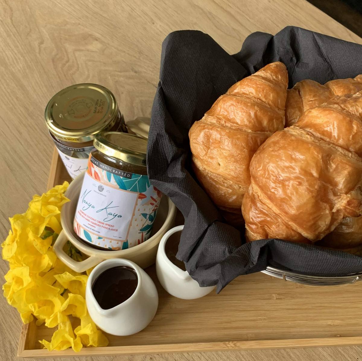 Indulge yourself with our platter of 6 croissants, our Signature Kaya and assorted drizzles. Enjoy with small-batch butter and our Atlas Handcrafted Nonya Kaya’s & preserves, there’s no simpler way to bring a taste of France and Singapore to the breakfast table.