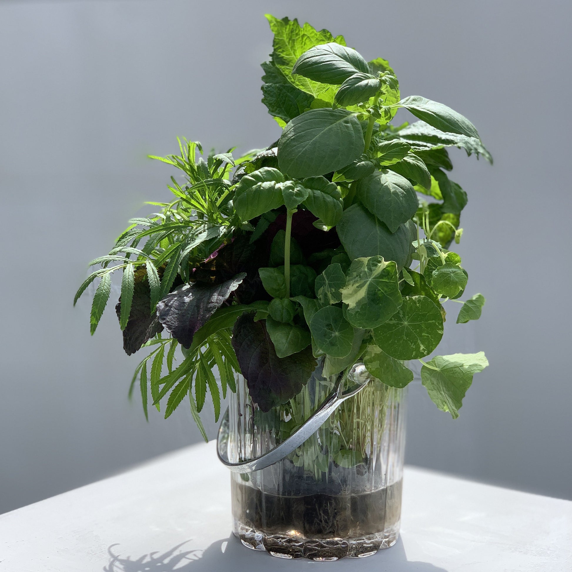 6 Living Herbs (Green Shiso, Purple Shiso, Genovese Basil, Mini Basil, Black Mint and random harvest herbs of the week)