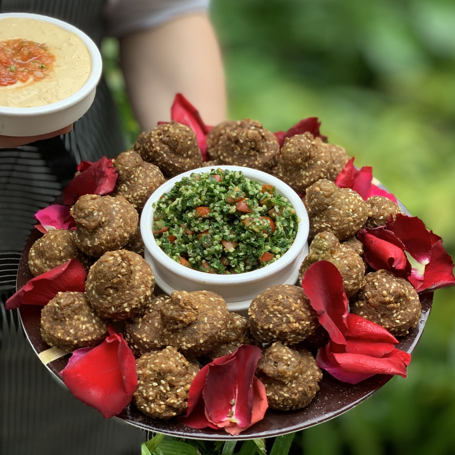 Ideal as a non-pork component of a larger catered spread. Our Falafel Platter allows you to experience the best of middle-eastern cuisine! Let us bring you on a journey into the desert! Experience authentic falafel (fried chickpea patties), tabbouleh salad, and hummus with this platter.