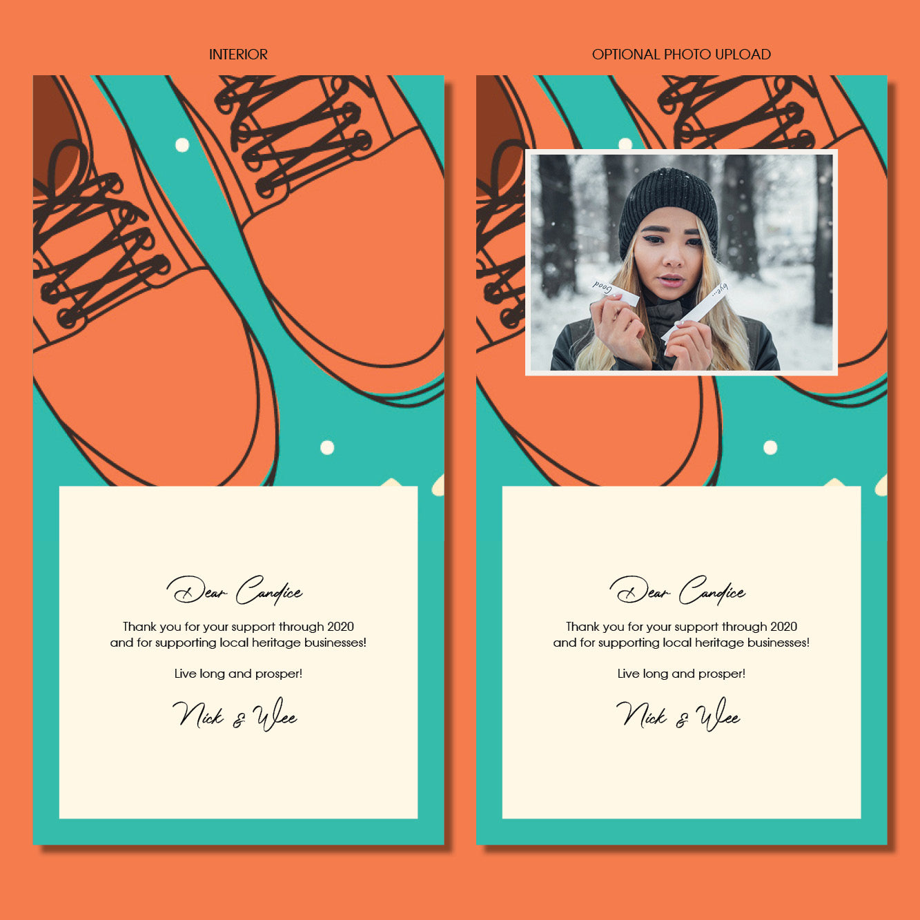 Your personalized message will be individually added to the card by our in-house graphic designers, You may add a message of up to 2 paragraphs and a maximum of 8 recipients per card. The Atlas body and name typeface has been specifically chosen for clarity and class.