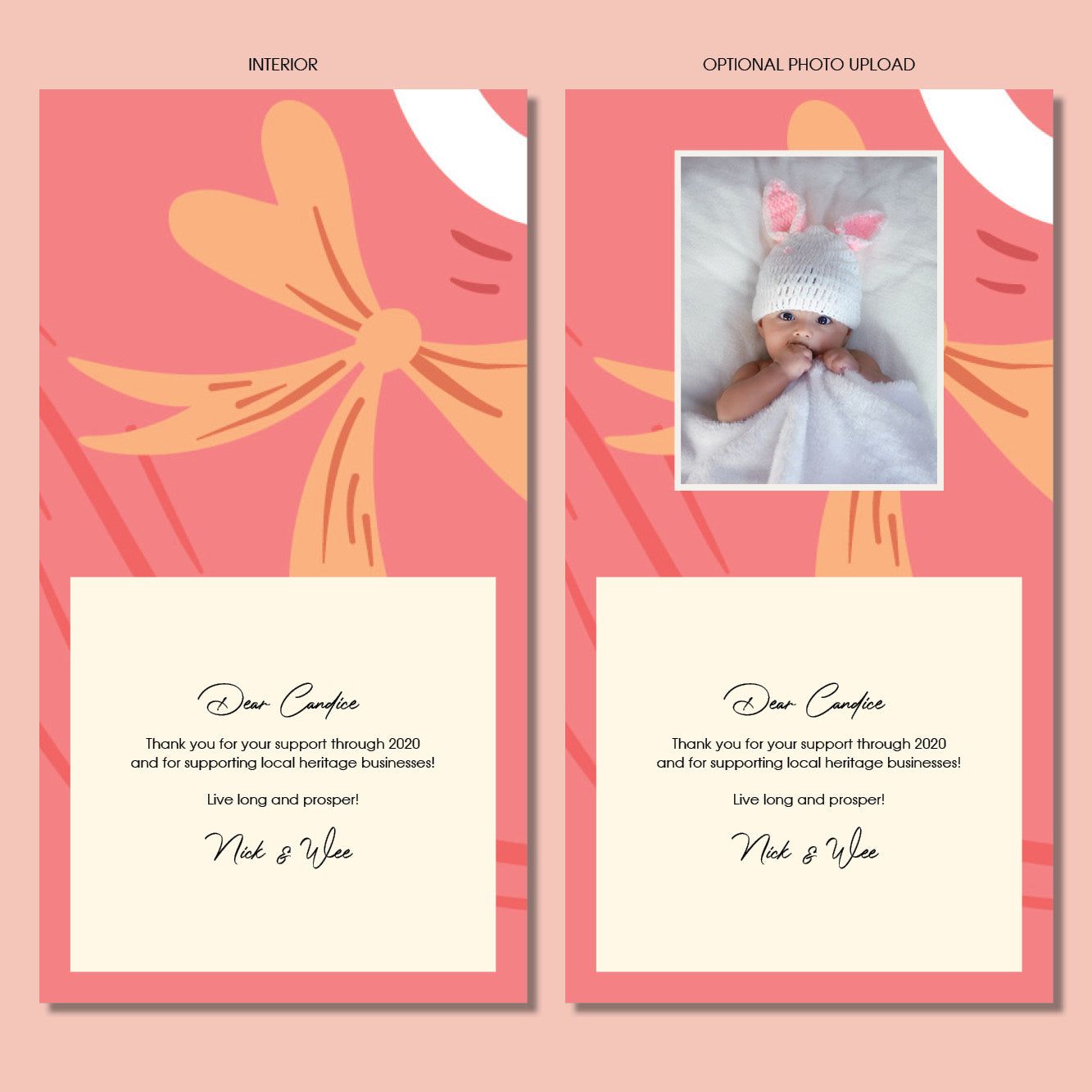 Revive the age-old tradition of greeting cards and let us assist you to send a bespoke card to your loved ones to show them you think about them with your customized messages!