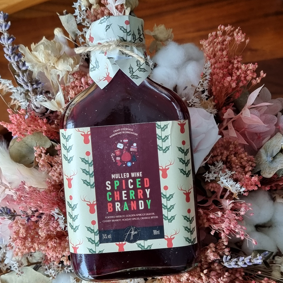 Fortified Merlot, golden Apricot liquor, cherry brandy, holiday spices, Orange bitters,