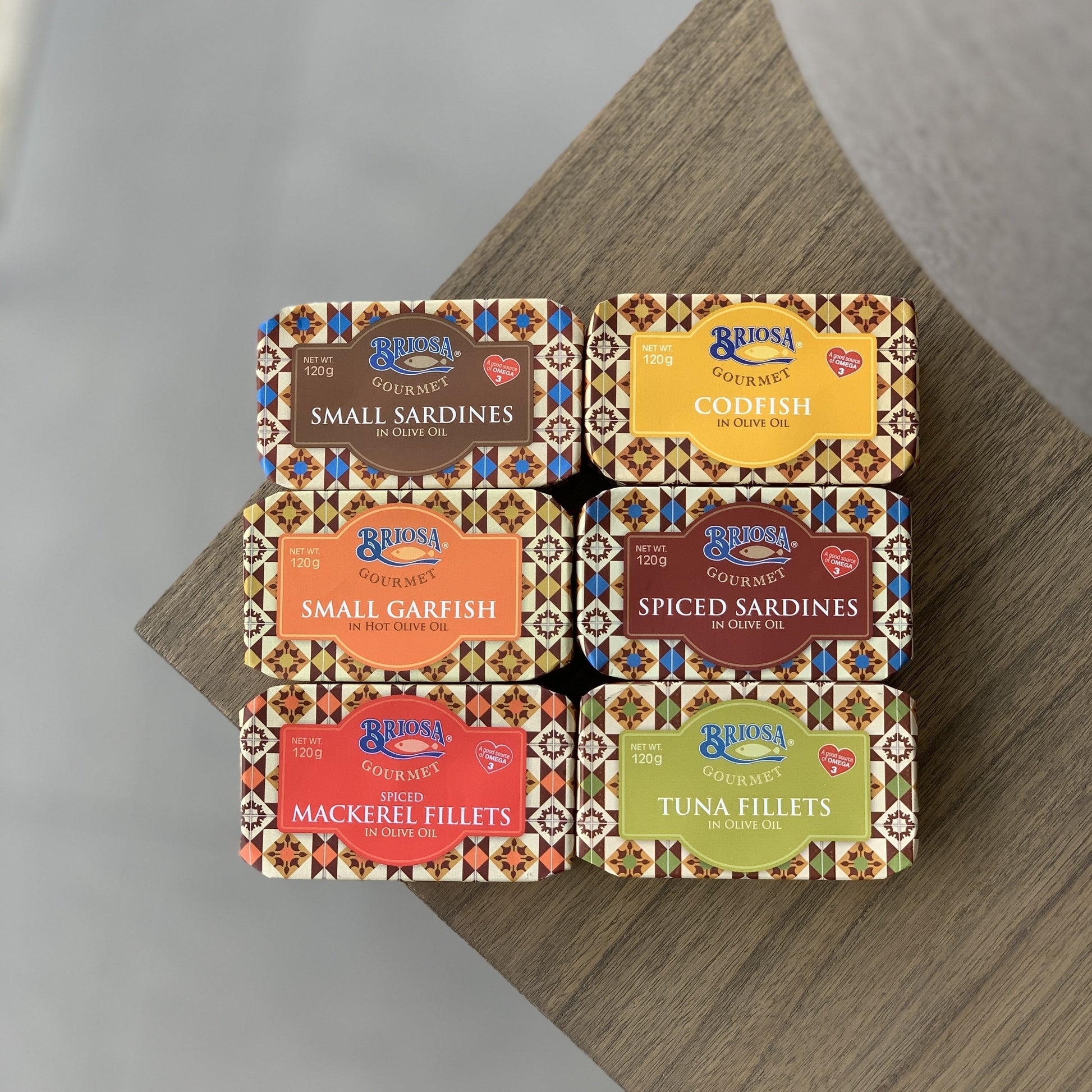 - 6 assorted tins of Briosa Premium Portuguese seafood
