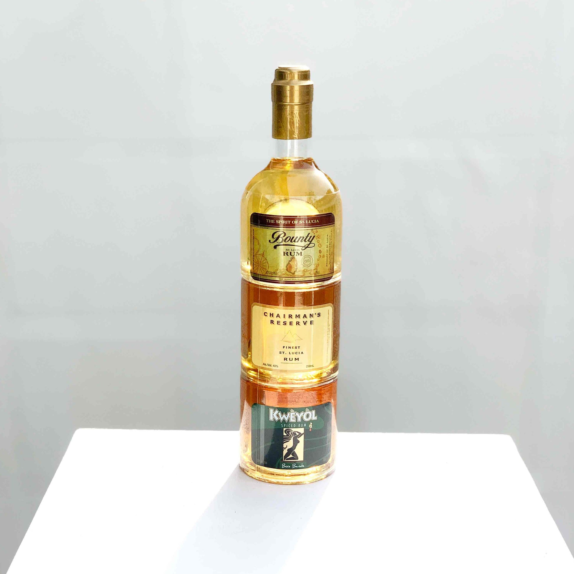 A tasting set of St Lucia's best tasting rums, including Bounty Rum, Kweyol Spiced Rum & Chairman's Reserve Rum.